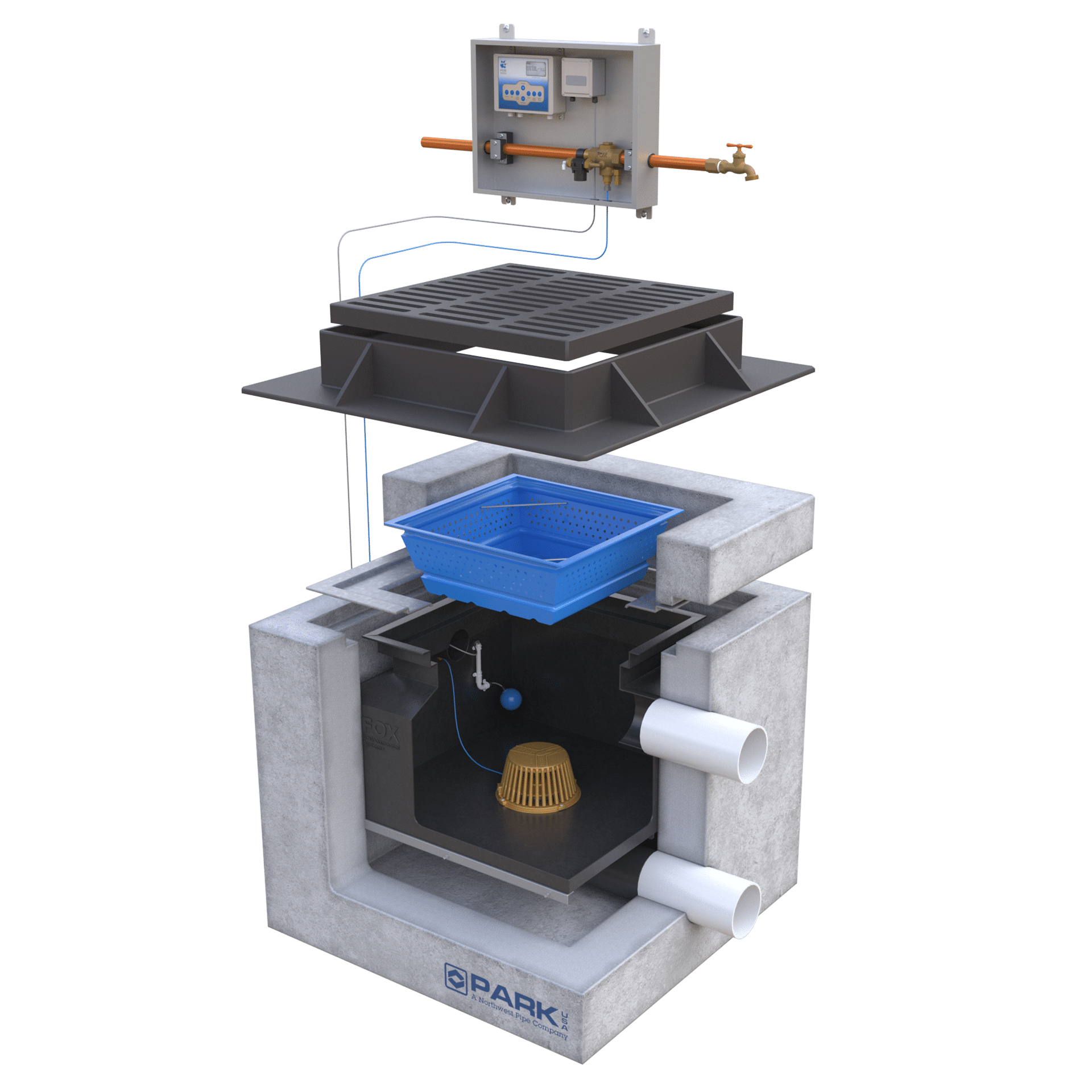 The Fox Valve Runoff and Washdown Diversion System is designed to manage runoff in outdoor wash areas. Diverters are housed in a precast concrete basin and traffic-rated for direct bury. The easy-to-install systems are approved to municipal specifications.