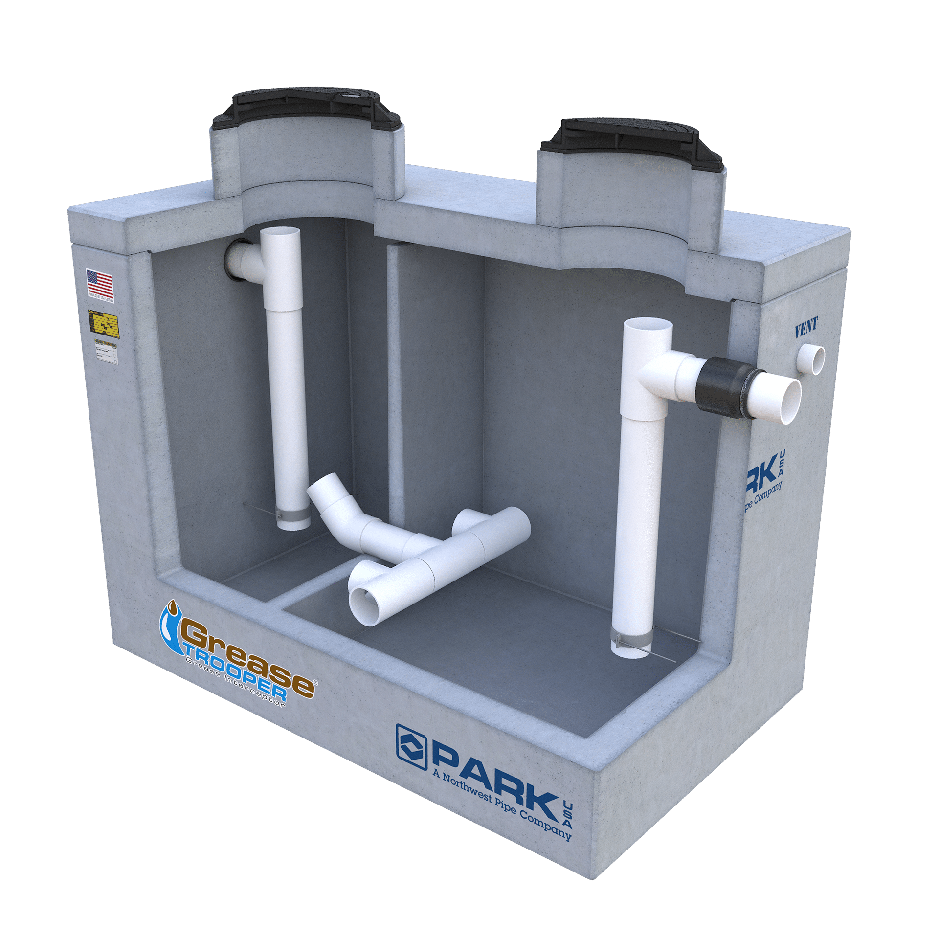 Our GreaseTrooper® Gravity Grease Interceptors feature monolithic baffles and resilient pipe connections, ensuring watertightness and preventing FOG (fats, oils, and greases) from disrupting wastewater treatment operations.