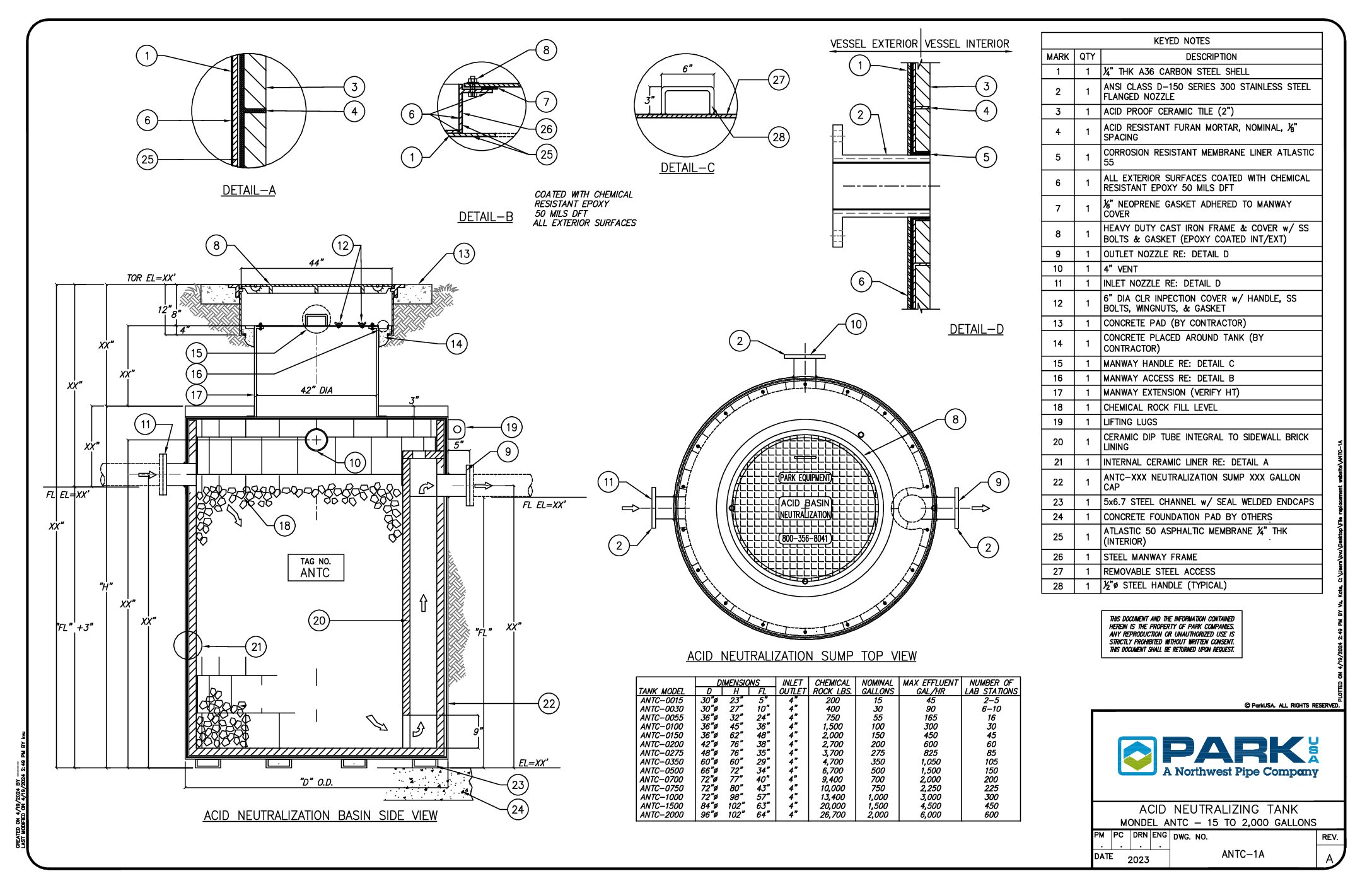 Monolithic tank and leakproof construction with choice of interior acid proof liners.