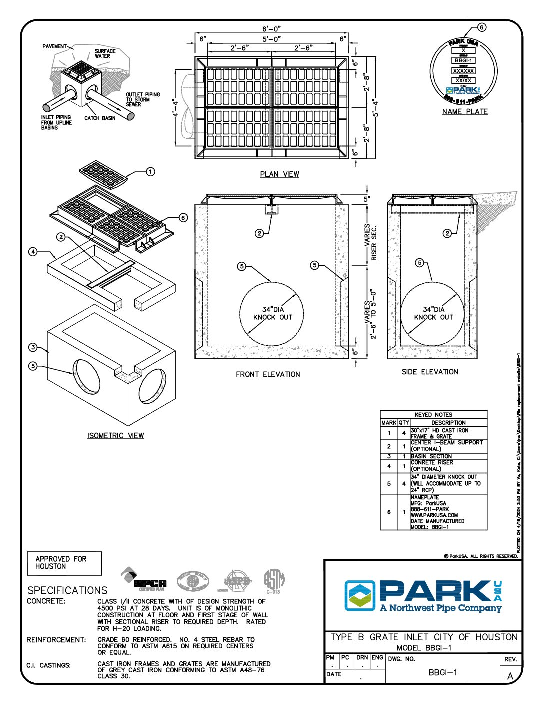 Type B Grate Inlet (City of Houston, Model BBGI-1)