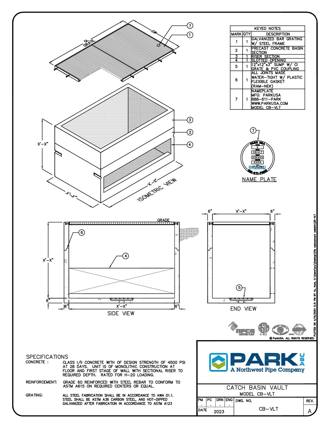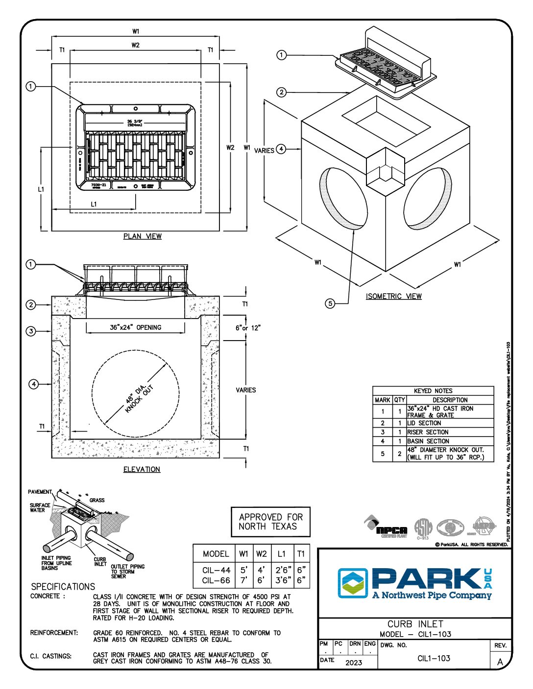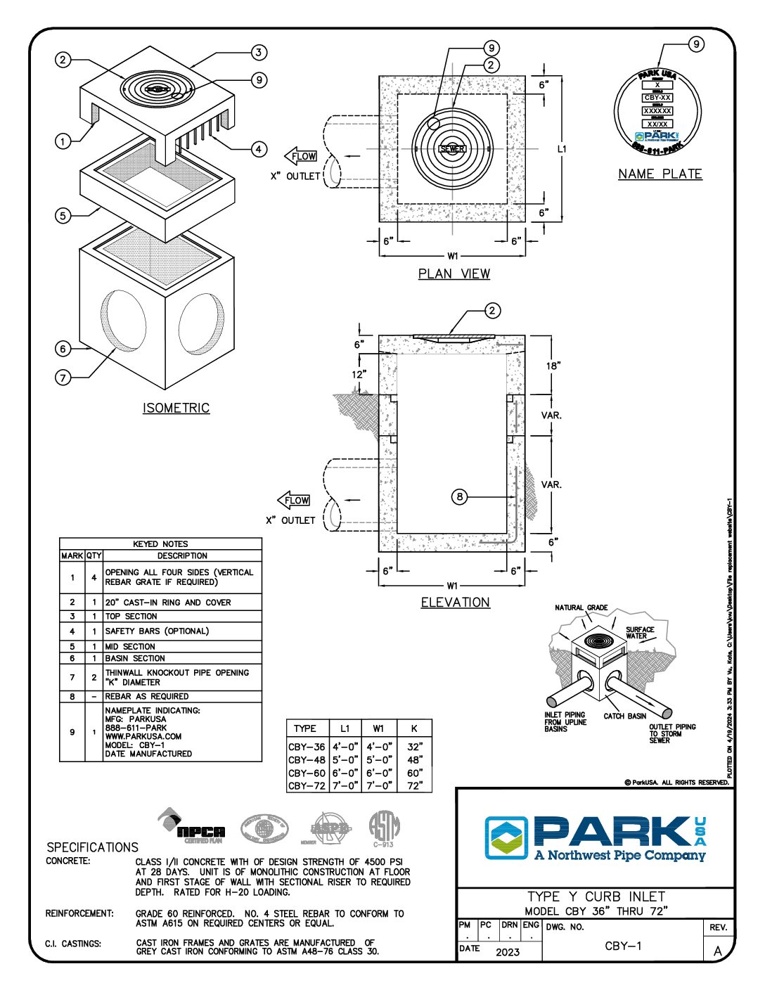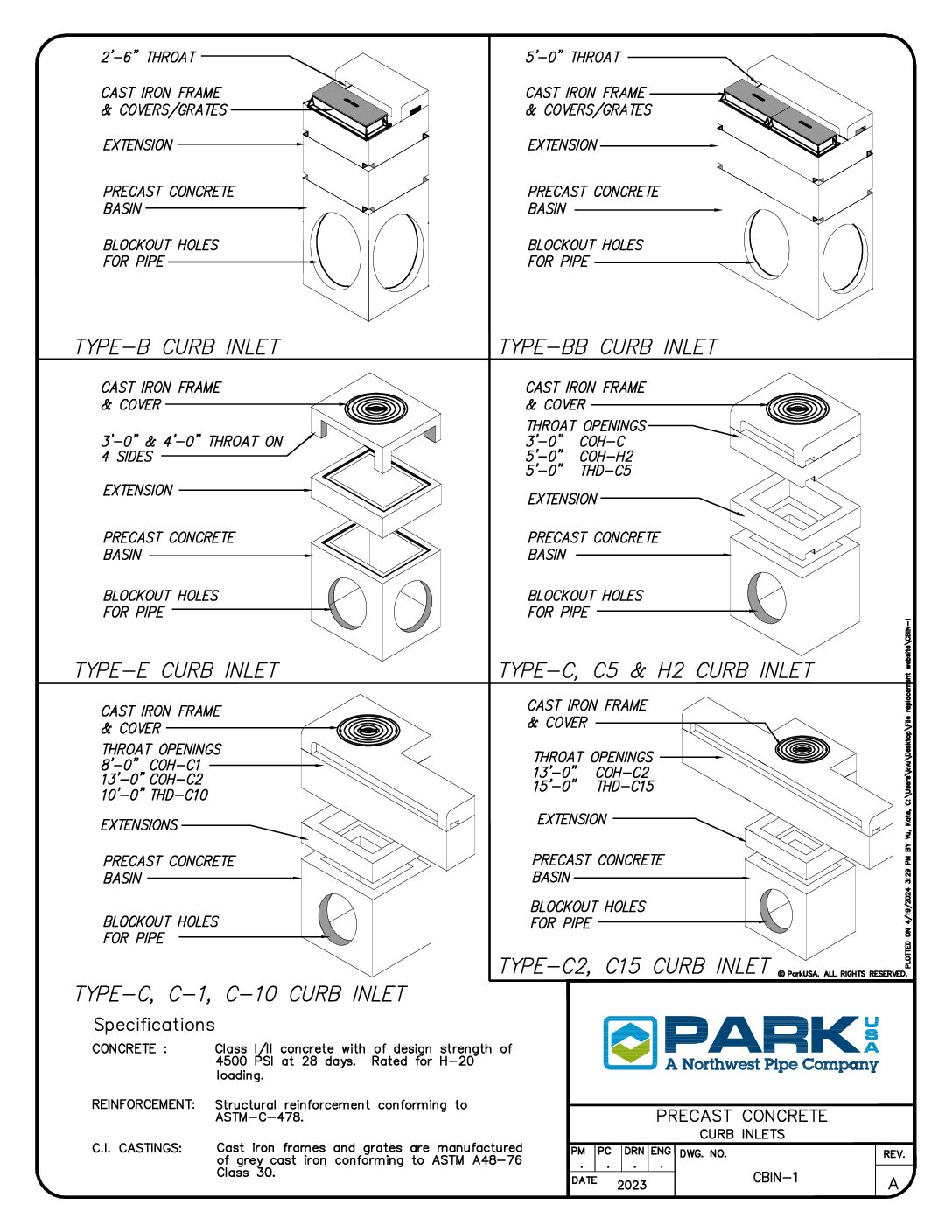 NWPX Park precast concrete inlets are an essential element of stormwater management systems. They collect water from impervious areas such as parking lots and roadways to prevent flooding and minimize damage to infrastructure and property. Curb inlets are typically rectangular or trapezoidal in shape and fit within the curb line.