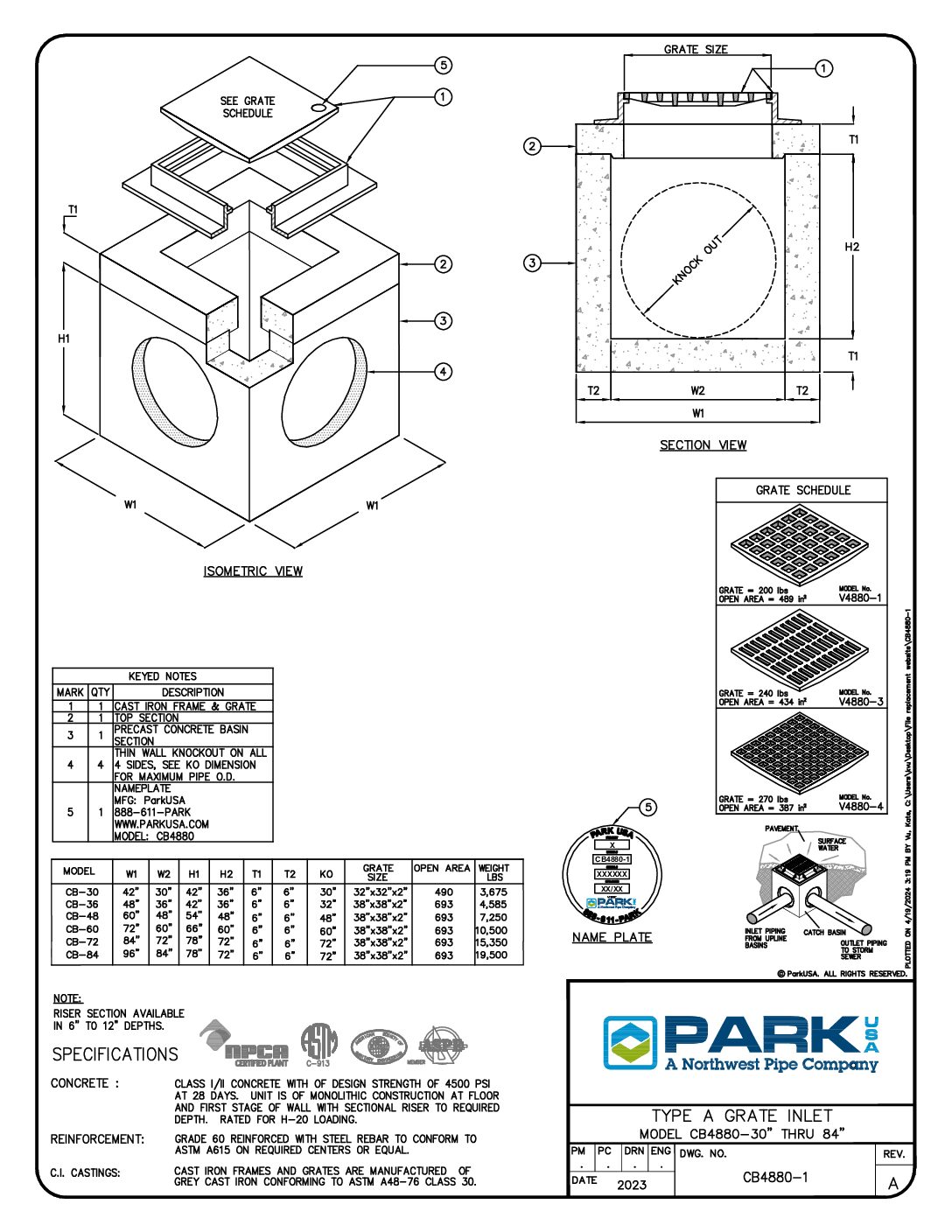 Type A Grate Inlet (Model CB4880 – 30″ to 84″)