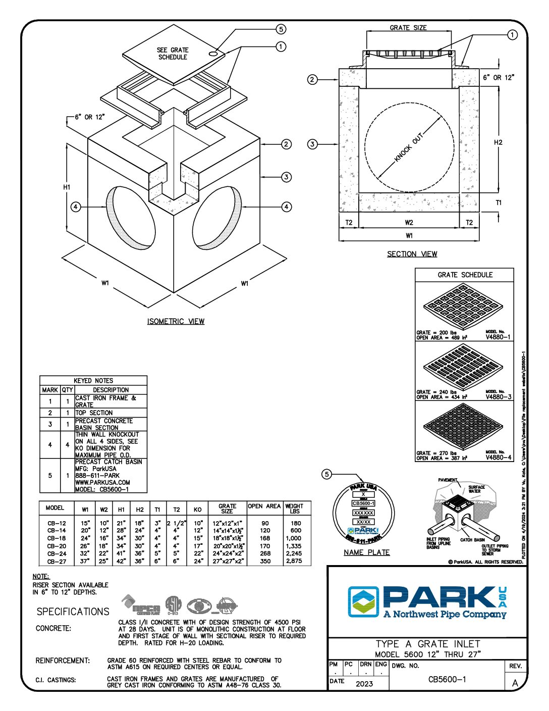 Type A Grate Inlet (Model 5600 – 12″ to 27″)