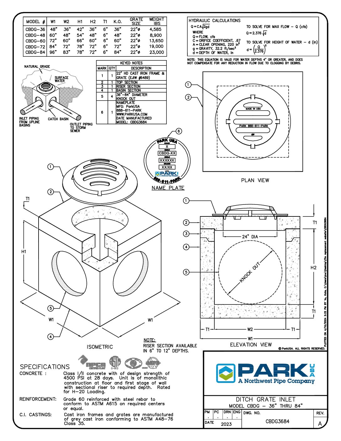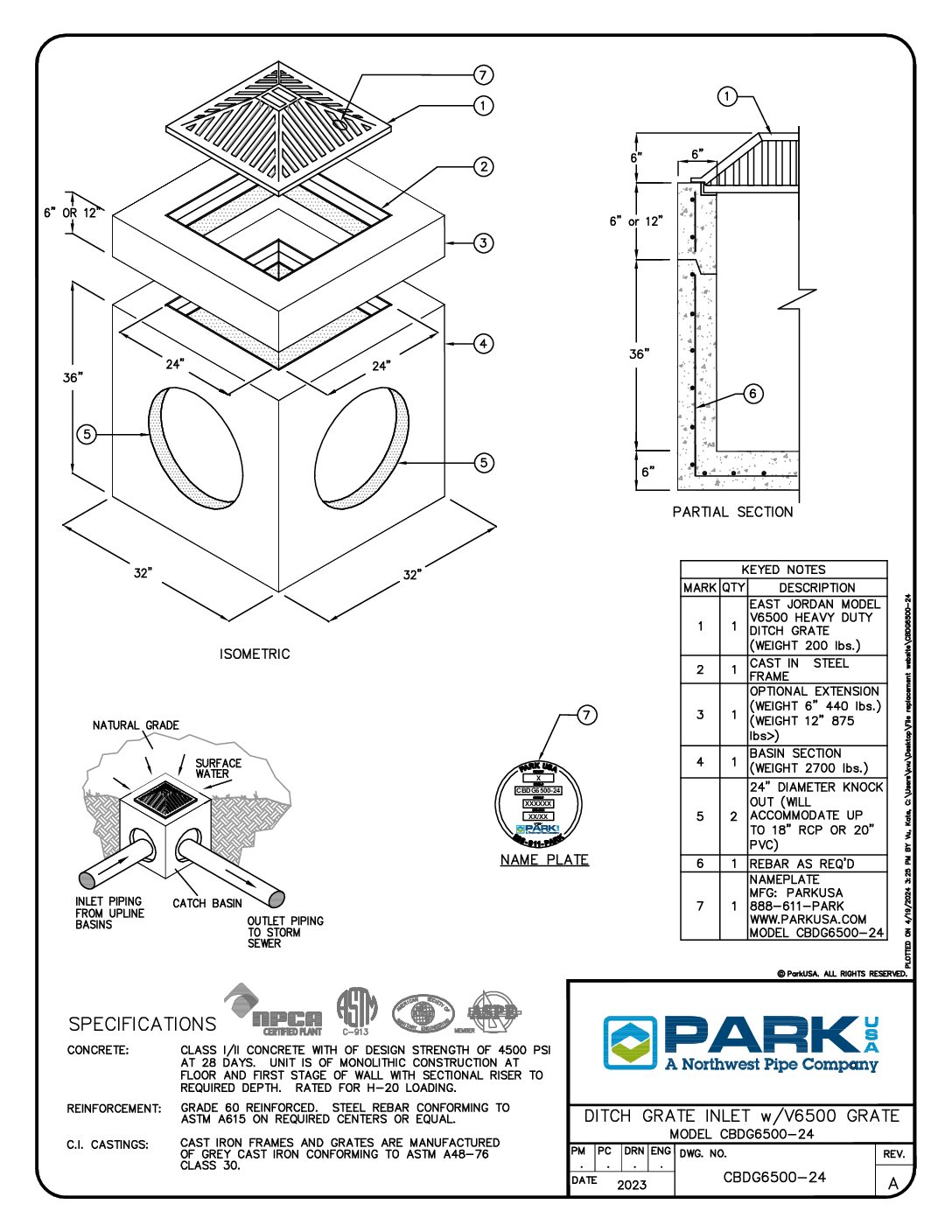 Ditch Grate Inlet with V6500 Grate (Model CBDG6500-24)