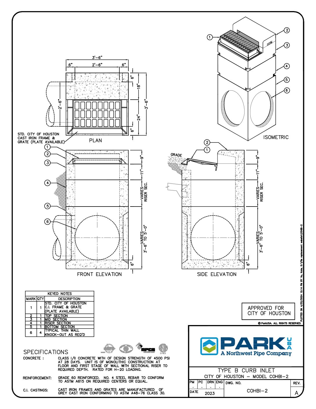 Type B Curb Inlet – City of Houston (Model COHBI-2)