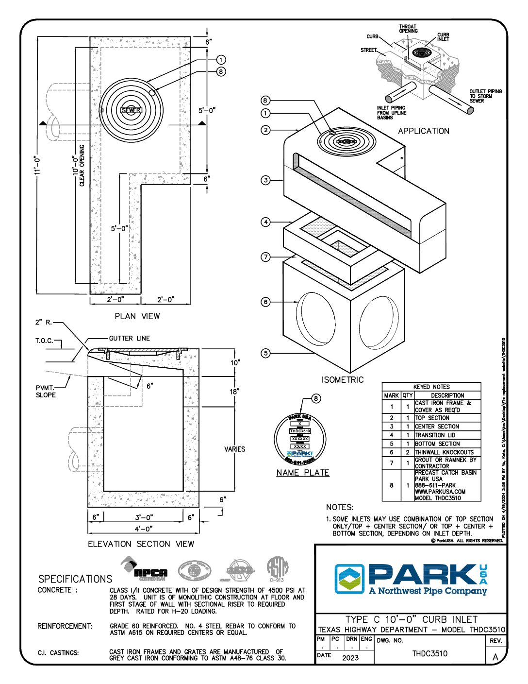 Type C 10′-0″ Curb Inlet – Texas Highway Dept. (Model THDC3510)