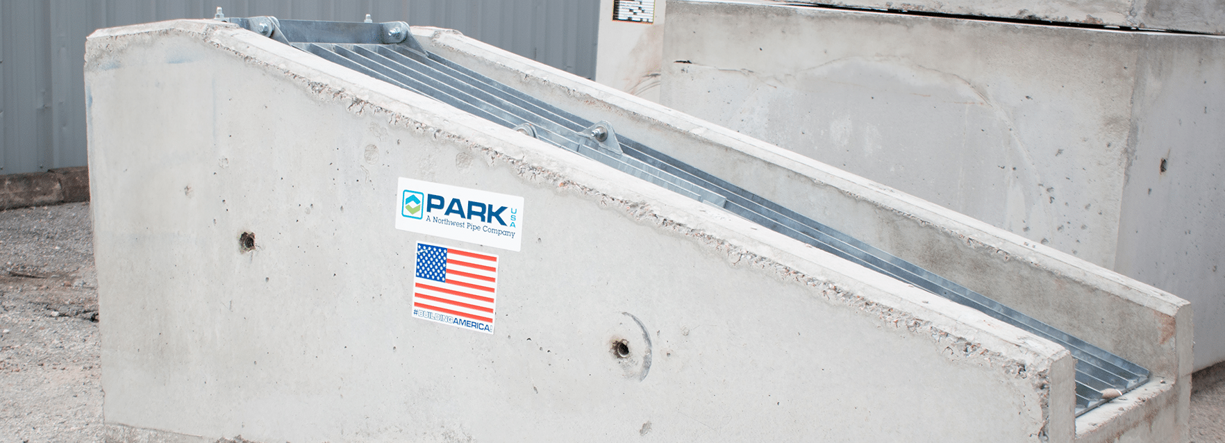 The NWPX Park floatable collection screen is a system designed to capture floatable debris within a stormwater detention pond or basin before it is discharged into a storm sewer. Built in various slope configurations (3:1, 4:1, and 6:1) to match the detention pond’s interior berm wall, the screens feature a precast concrete headwall with a galvanized steel trash screen that can be hinged for easy lifting during maintenance and cleaning.