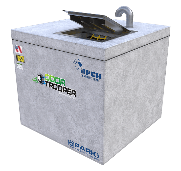 NWPX Park’s OdorTrooper® activated carbon systems are highly effective and versatile odor control solutions for wastewater management. A simple system can include an attached canister of activated carbon or a more complex system may employ ventilation to move air through an activated carbon scrubber.