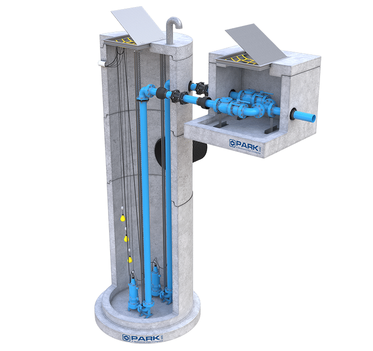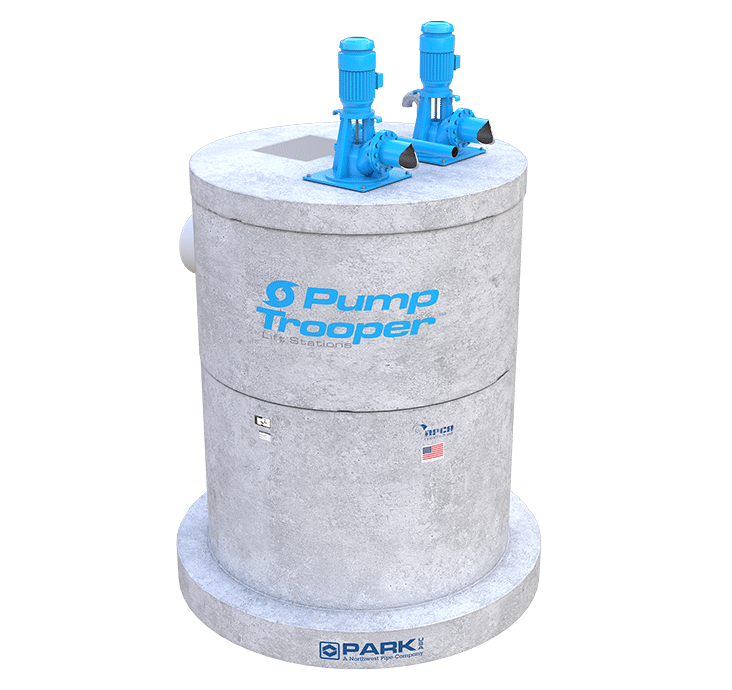 The NWPX Park PumpTrooper® is a pre-engineered pump lift station system complete with all necessary components for fully automated operation. An essential component for wastewater and stormwater infrastructure, a Pump Lift Station moves wastewater, stormwater, industrial water, or other process fluids from a lower to higher elevation.