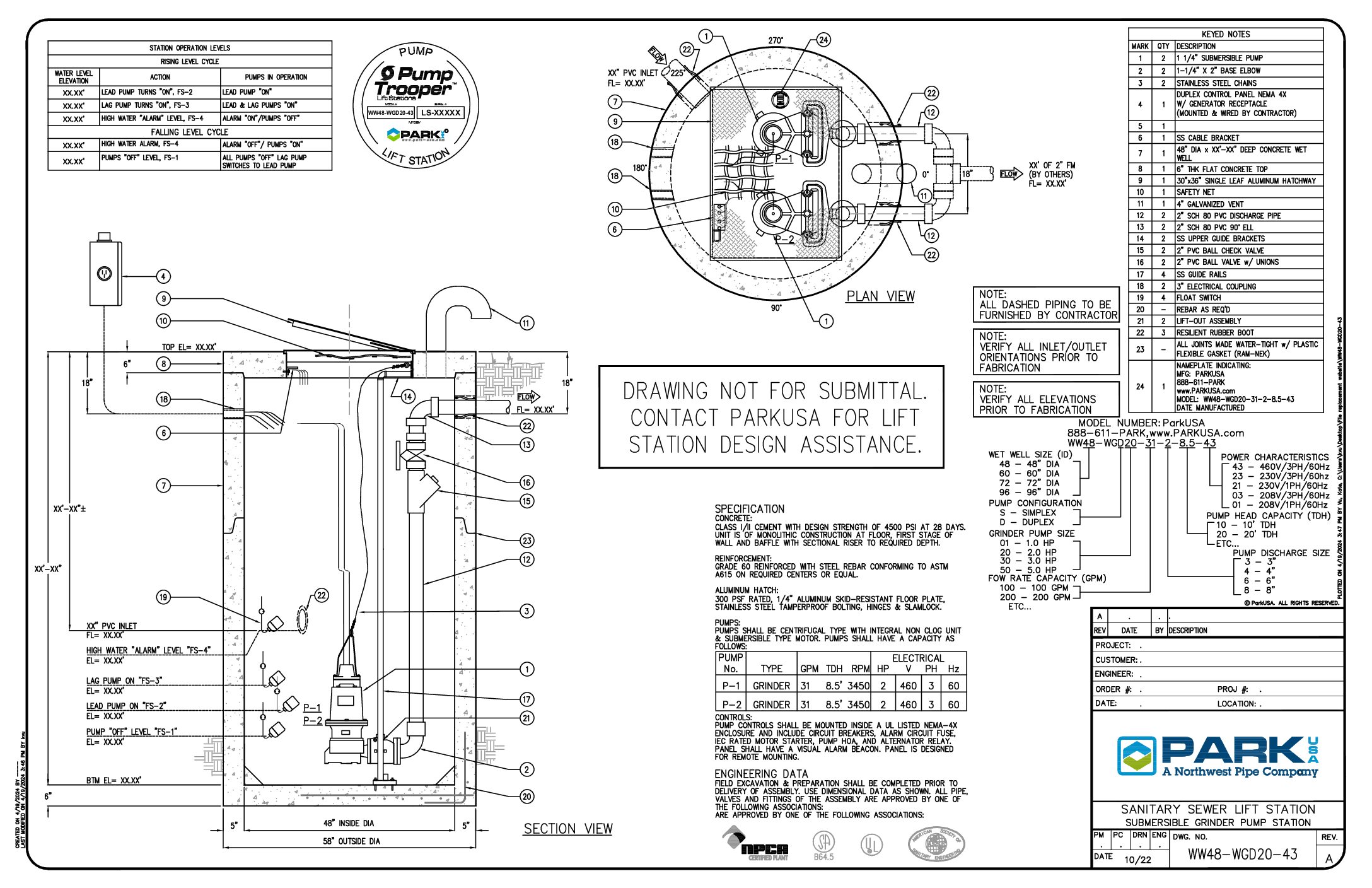 Additional components such as alarms and backup power supplies ensure the safe and reliable operation of the system. The NWPX Park PumpTrooper® is a pre-engineered, fully automated lift station system that includes all internal components installed during production so that it can be easily installed on site once delivered.