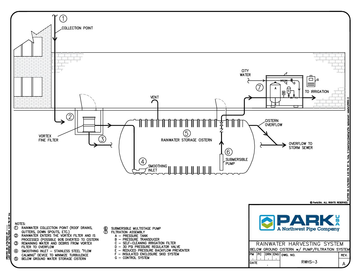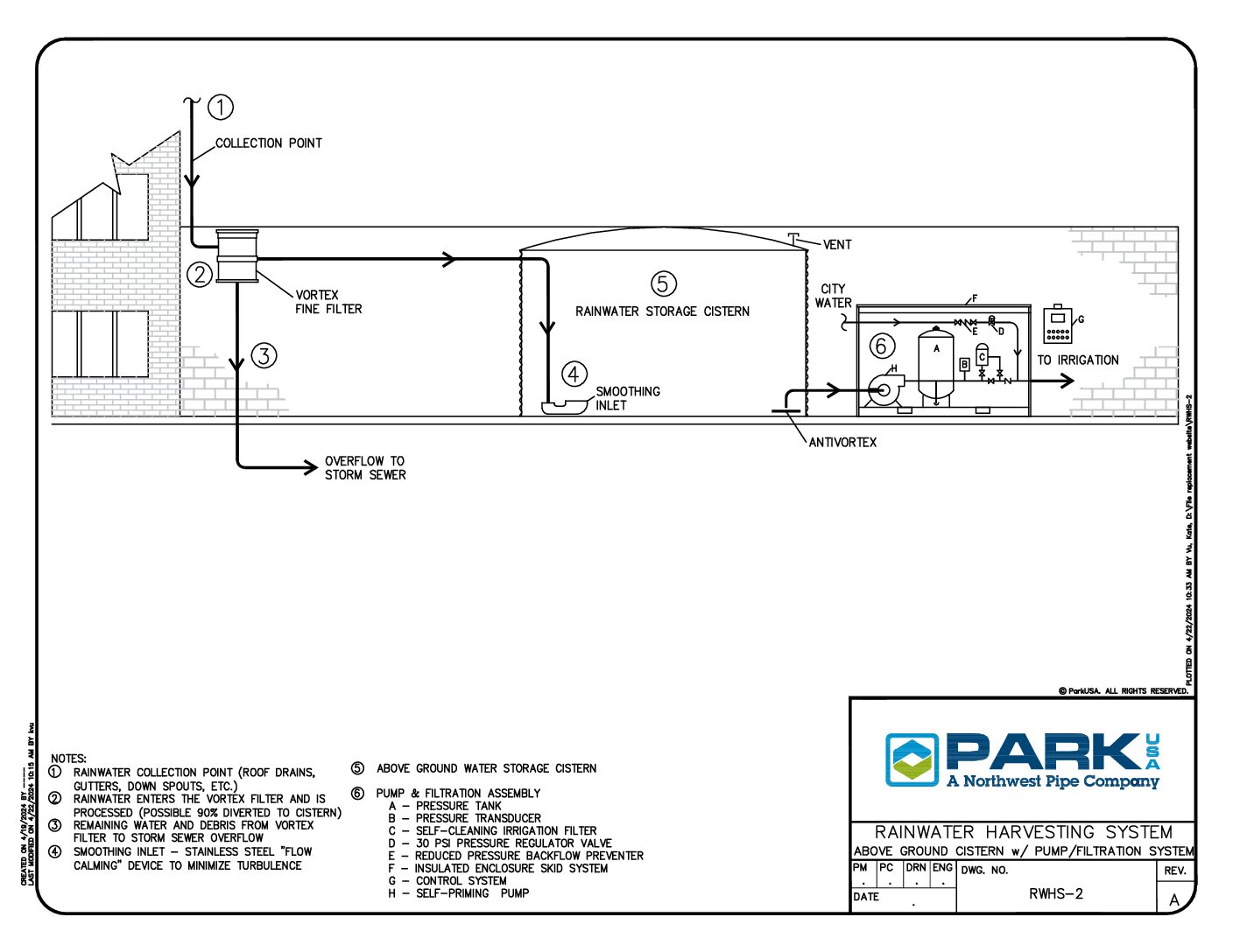 The NWPX Park Rainwater Harvesting System collects rainwater efficiently from roofs, gutters, or other catchment areas. A filter system removes debris and contaminants, and the water is held in a tank until needed. Used in both residential and commercial settings, this system reduces dependence on treated municipal water, making it an eco-friendly and efficient solution.