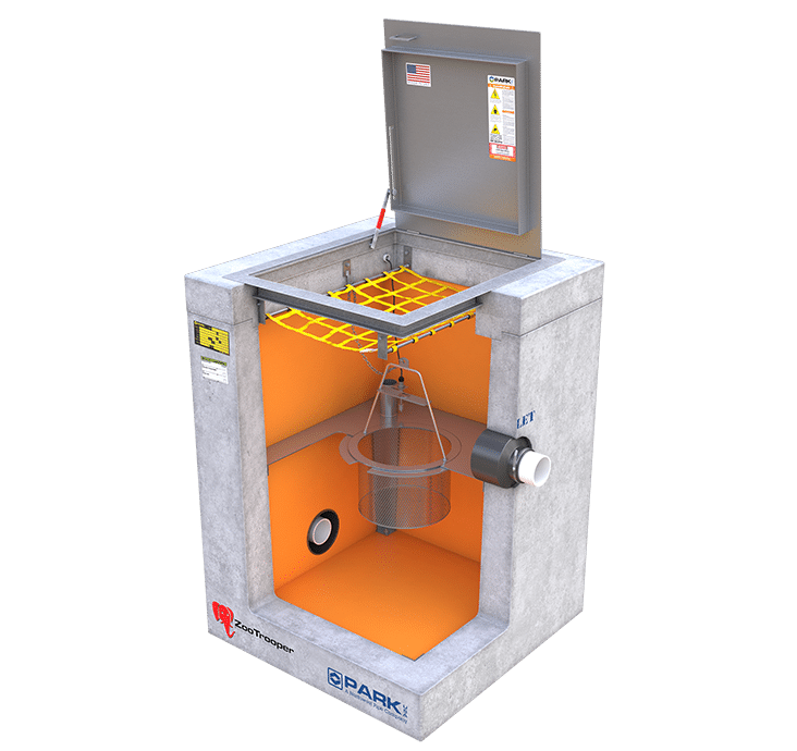 The ZooTrooper® intercepts solid waste of gravel, plants, animal excrement, uneaten food, and debris to prevent blockages in sewer lines and reduce environmental impact.