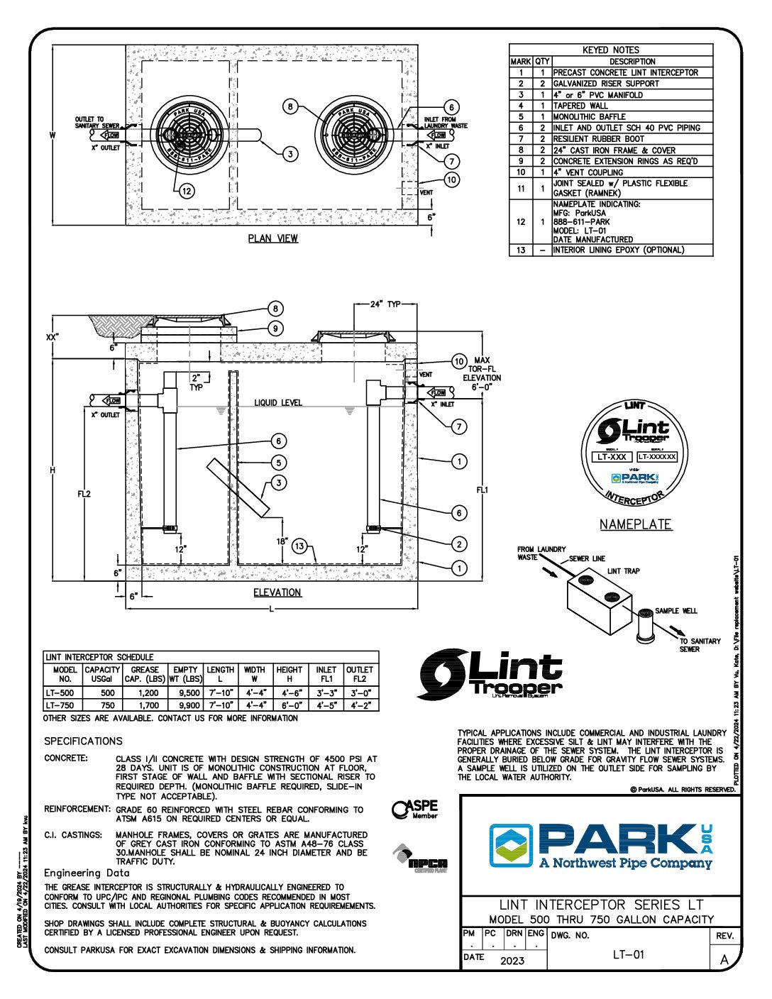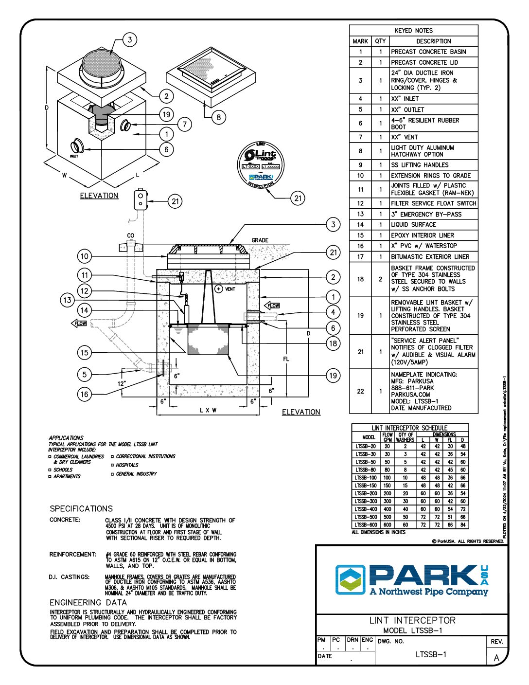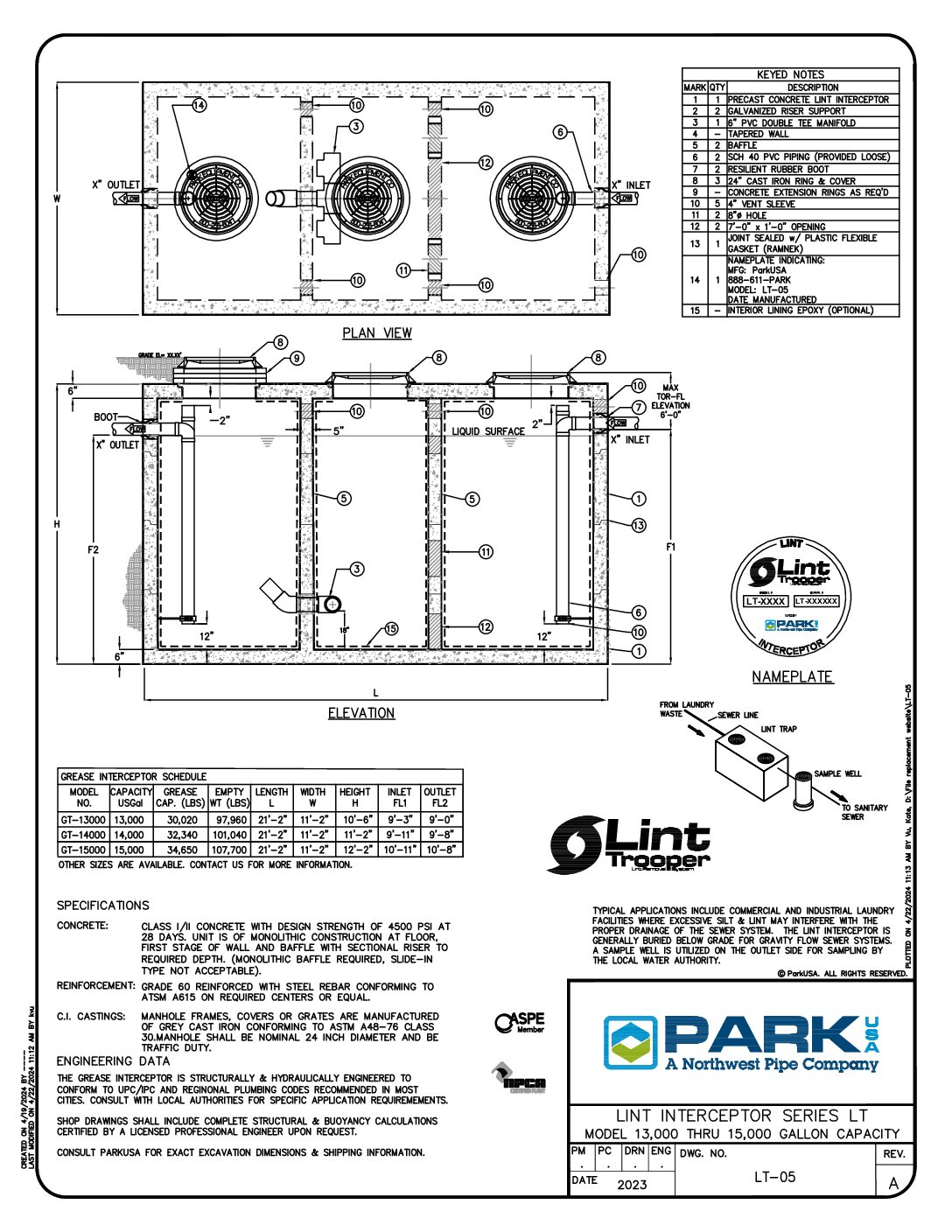 NWPX Park’s solids interceptors effectively collect and contain solid substances in commercial wastewater, protect sewer infrastructure, reduce municipal treatment costs, and comply with regulations while minimizing environmental impact. They are designed for multiple applications: