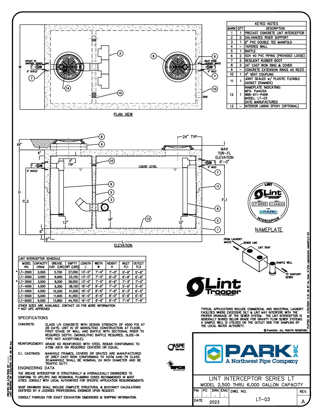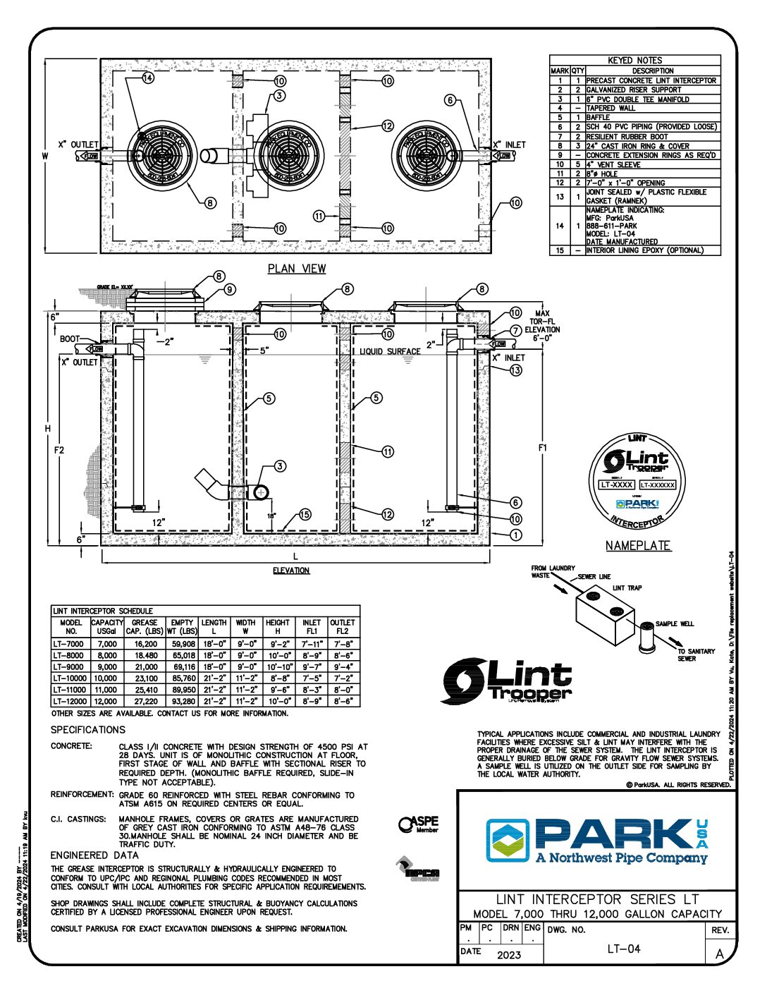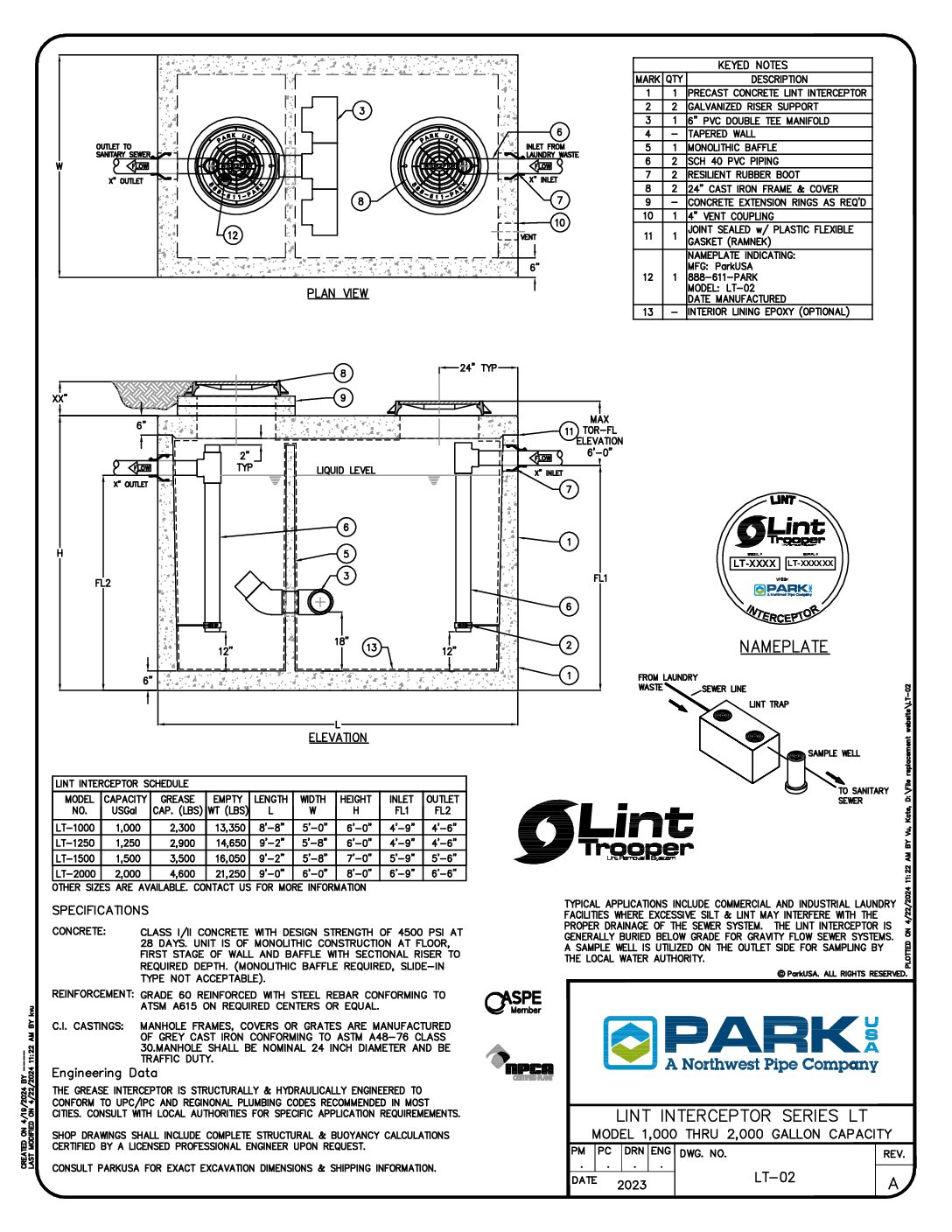 NWPX Park’s solids interceptors effectively collect and contain solid substances in commercial wastewater, protect sewer infrastructure, reduce municipal treatment costs, and comply with regulations while minimizing environmental impact. They are designed for multiple applications: