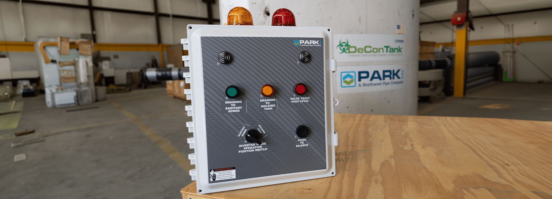 At the heart of many of our control systems is the NEMA 4x control panel that can be wall-mounted near our equipment indoors or out. The control panel offers visual indicators that show power status, indicating if the system is operational, a silence button for controlled alarm response during events, and a test button for streamlined routine system testing and verification.