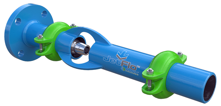 The JetFlo™ creates a flow pattern in tanks and basins that constantly circulates fluids, keeping solids suspended so they don’t settle to the bottom of the tank.