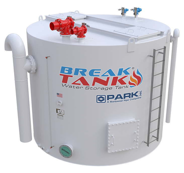 NWPX Park manufactures three main types of water storage tanks for domestic use and fire protection systems. Our BreakTank® family includes welded steel tanks, corrugated steel tanks, and precast concrete tanks. Commonly used in areas with limited water resources, inconsistent water supply and pressure, or settings with high water demand, BreakTank™ are non-pressurized atmospheric storage tanks that rely on gravity to provide water flow.
