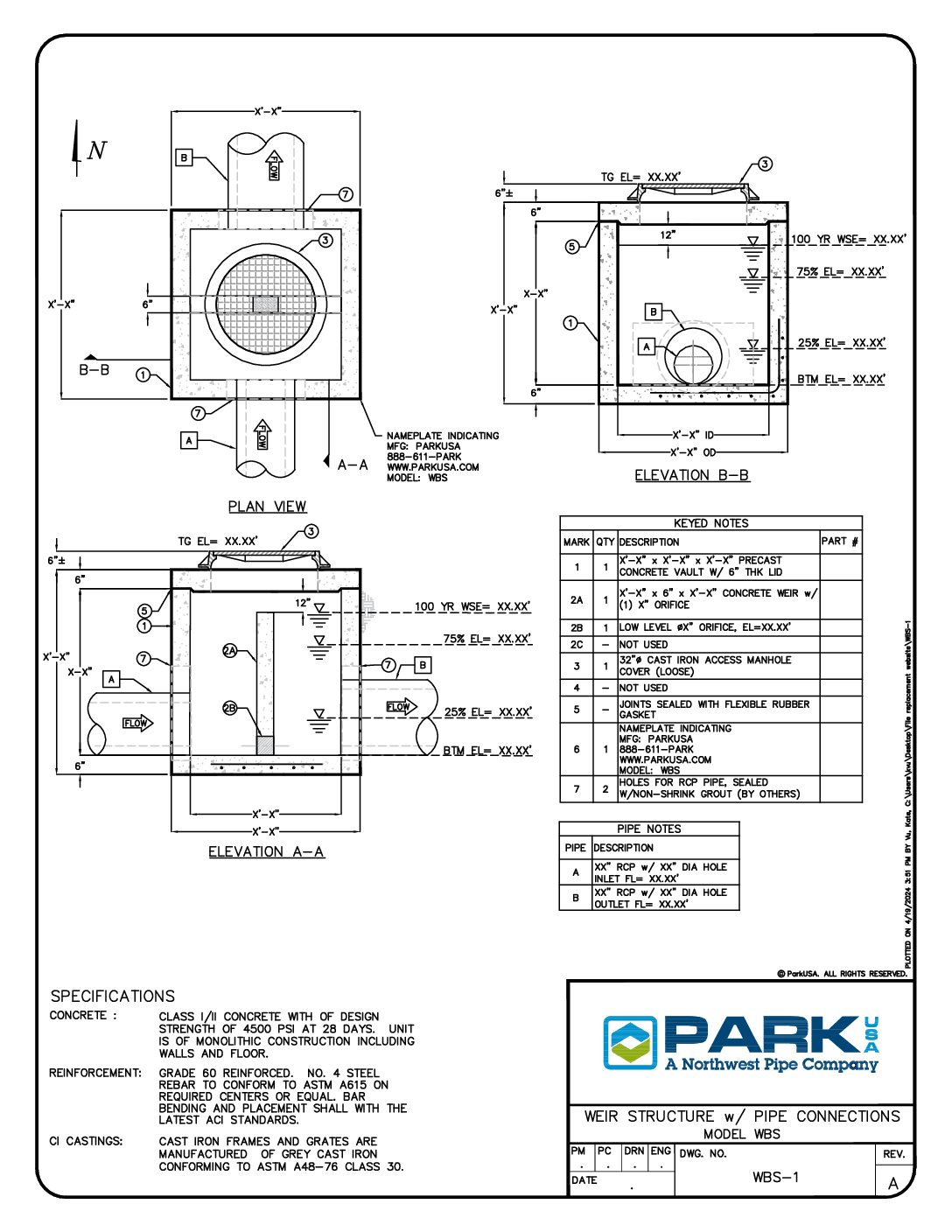 Stormwater weirs can temporarily detain large amounts of runoff in a pond or another detention structure.