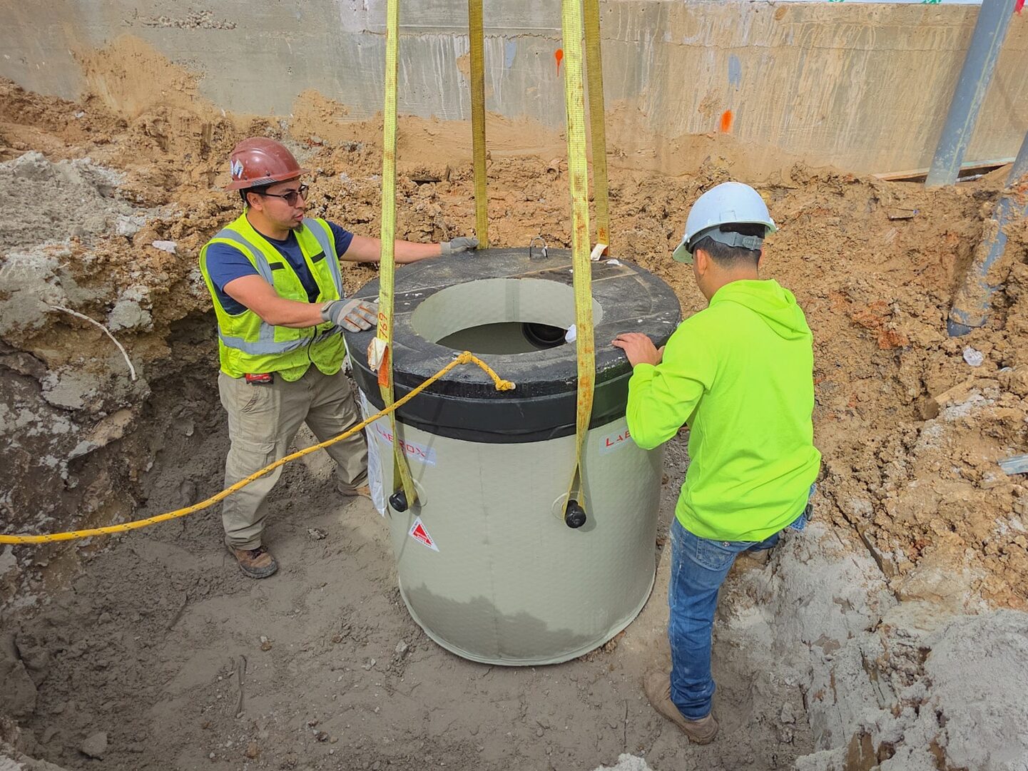ParkUSA delivered this LabTank® as a complete, pre-packaged system, including a pre-plumbed tank, neutralizing rock media, a concrete extension to raise it to grade level, and a locking ductile iron ring cover according to project specifications. The installation process was quick and efficient, with the system being easily lowered into place using a truck crane. Once installed, it was ready to connect to the existing piping.