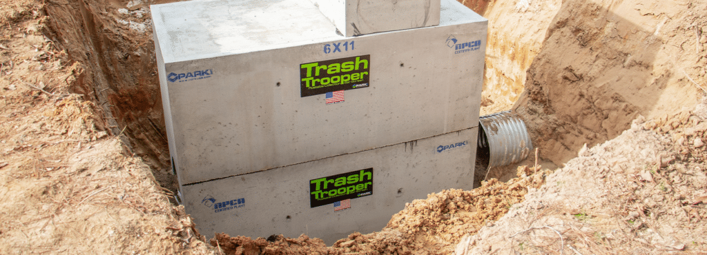 24” Stormwater Trash Interceptor – The TrashTrooper™ is an inline screening device designed for collecting and containing a wide variety of floatable pollution. It filters and captures coarse pollution such as cans, paper, pocket change, clumps of dirt, and other floating debris down to 1-1/2” in size.