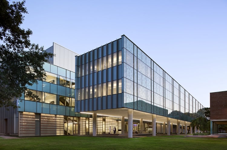 The Brockman Hall for Physics at Rice University has many labs to study physics. The building’s plumbing system is protected with an acid neutralization tanks system that collects lab wastewater, monitors its pH level, and uses neutralization media to treat the water.
